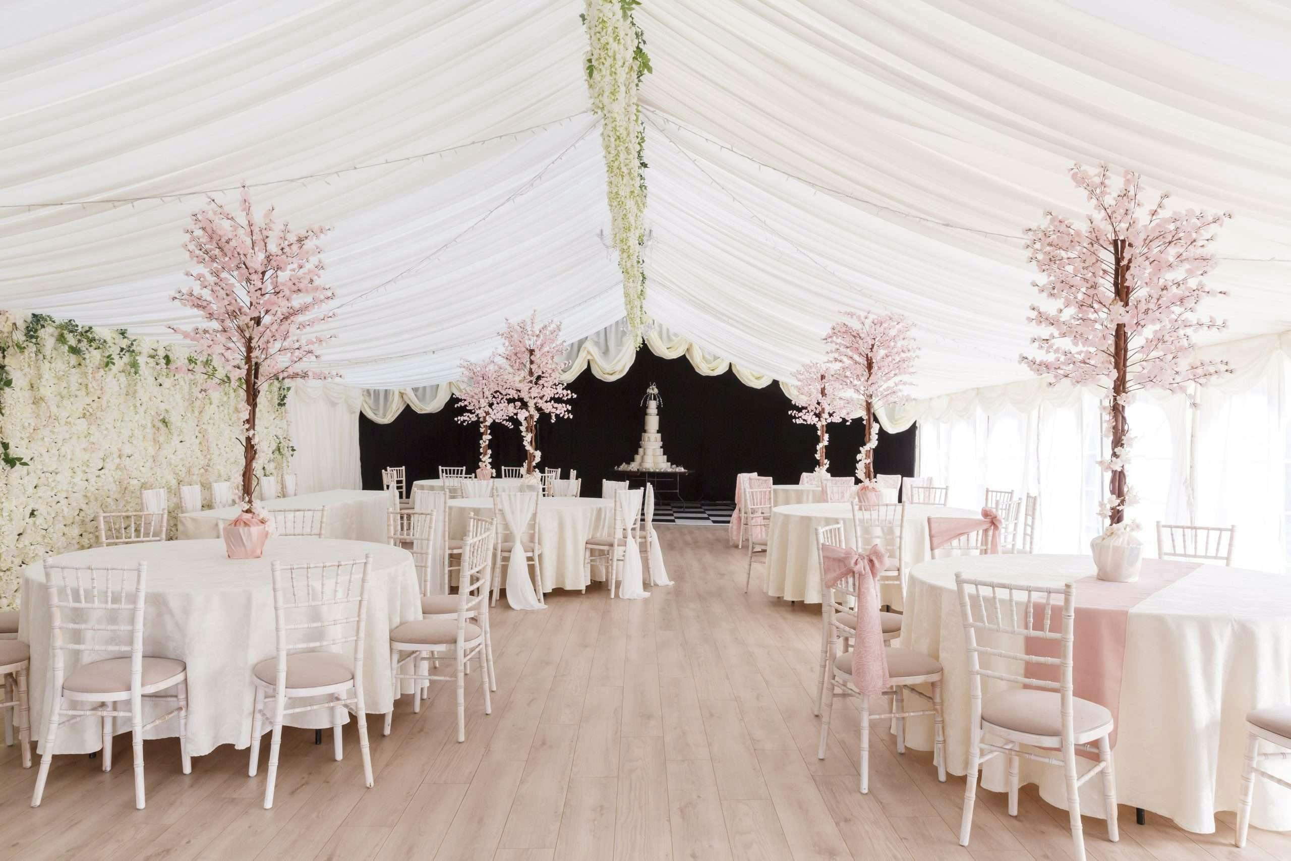 Situated in beautifully landscaped, part-moated gardens, the marquee offers unrivalled views over the picturesque Essex countryside. Boasting a large, custom-built bar and lounge seating area, chandeliers and fairy lights and complete with dancefloor area, with starlit ceiling canopy, our marquee is perfect for both daytime and evening events hosting anywhere from 30 to 180 guests. It is fully heated during the cooler months, can be opened along one side to make the most of the gardens during the summer and with plenty of space both indoors and out, it is the perfect year-round setting.